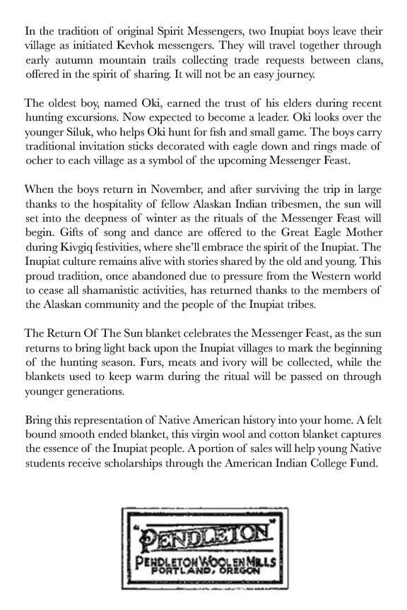 Every blanket sold to benefit the American Indian College Fund is inspired by a specific Native Indian tribe. The 'History Weaved In' campaign introduces an expanded story to each of these blankets. The story is included with the blanket in a limited edition handmade box.